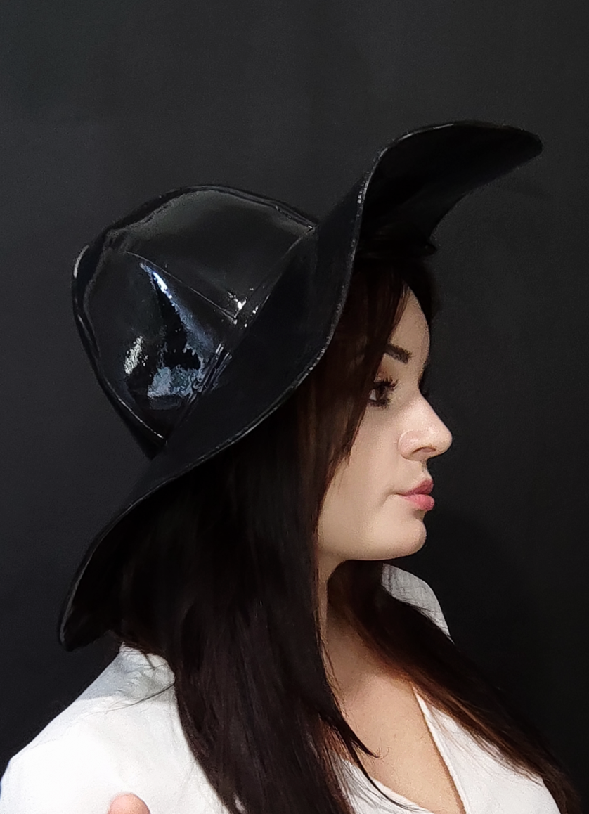 "Lady Evelyn" Wide Round Latex Hat with Removable Ribbon