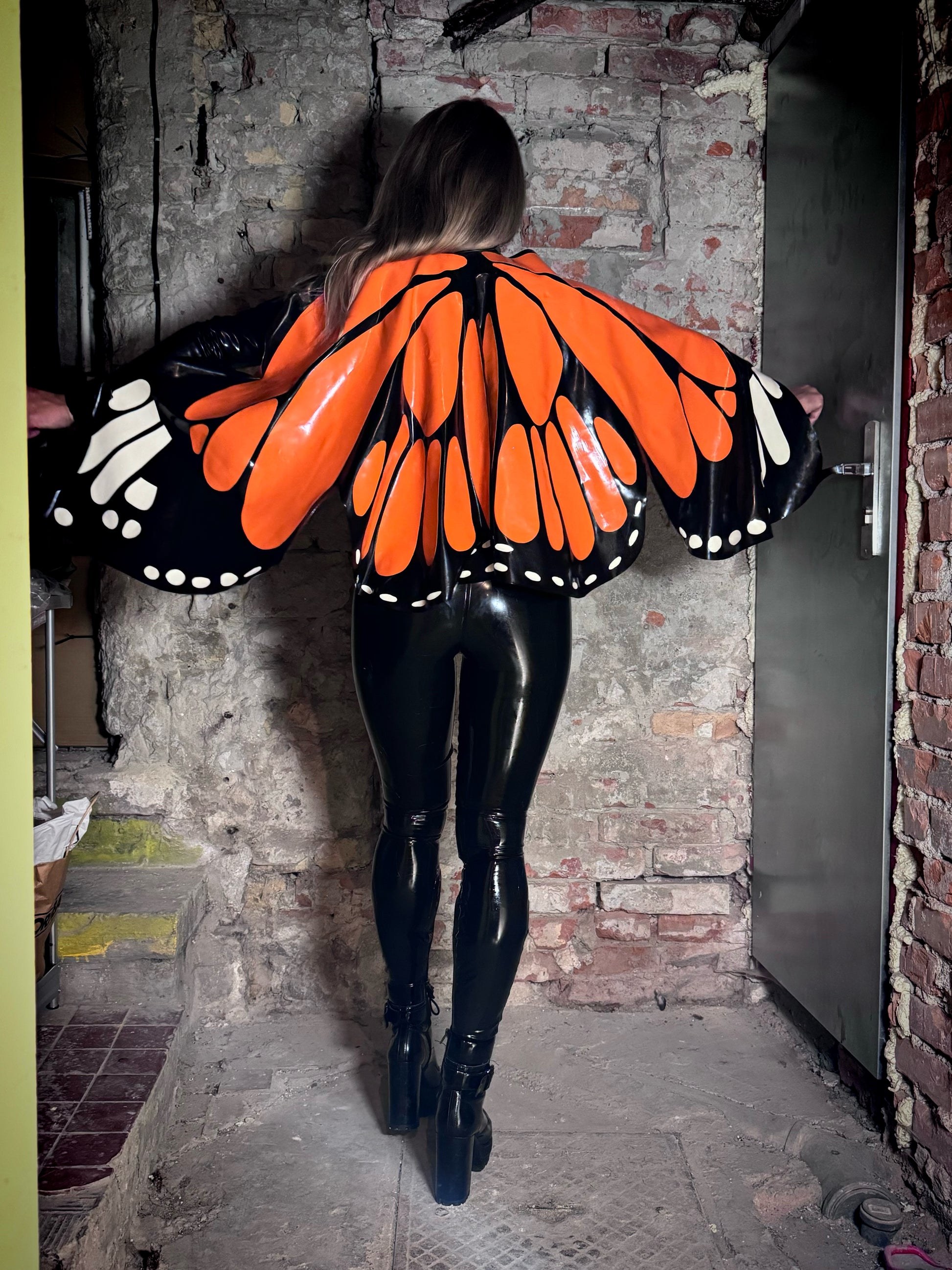 Each "Monarch" piece is made to order, bringing couture level craftsmanship to latex fashion. For those who want to embody freedom, transformation and fearless individuality, this design is the ultimate showstopper.