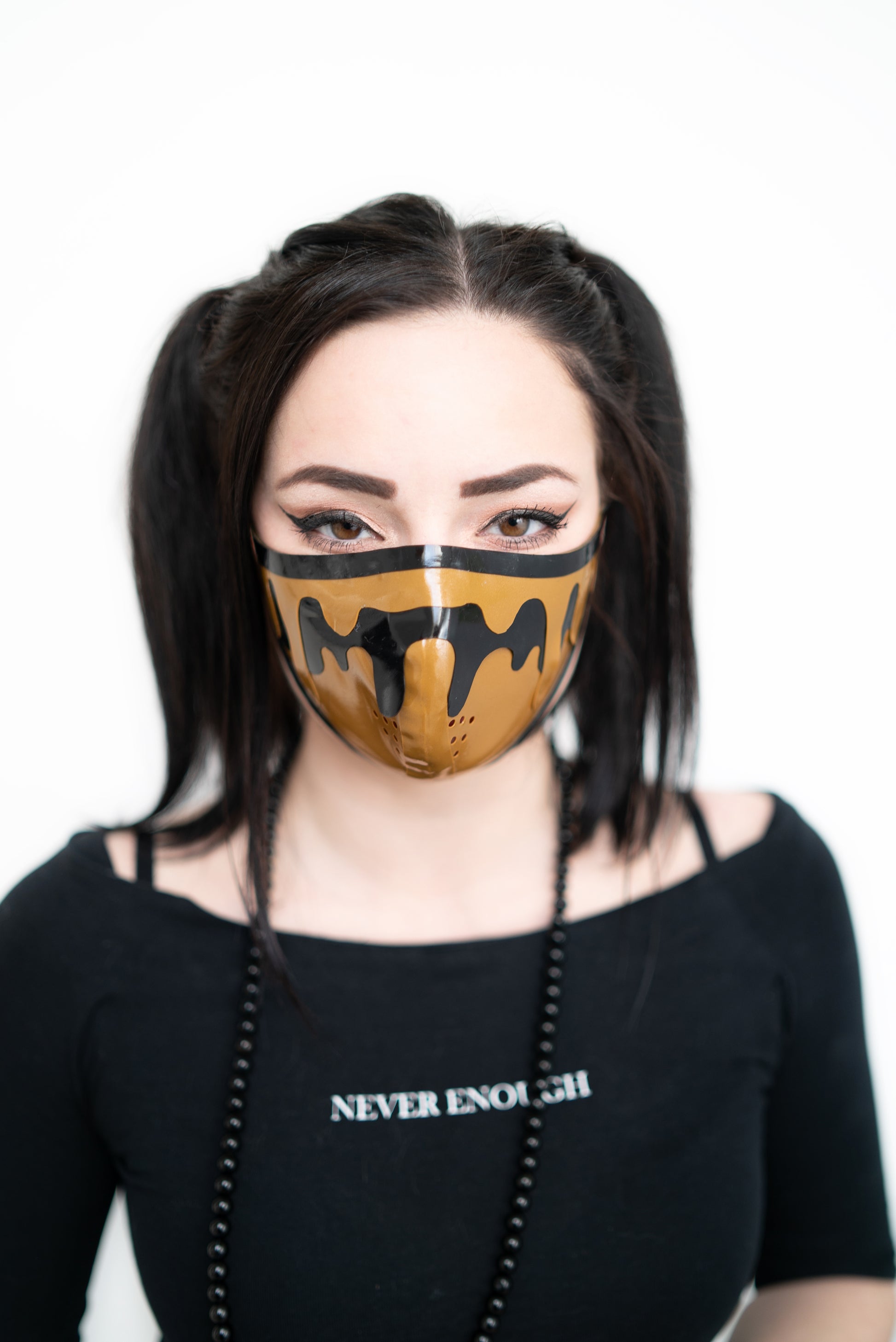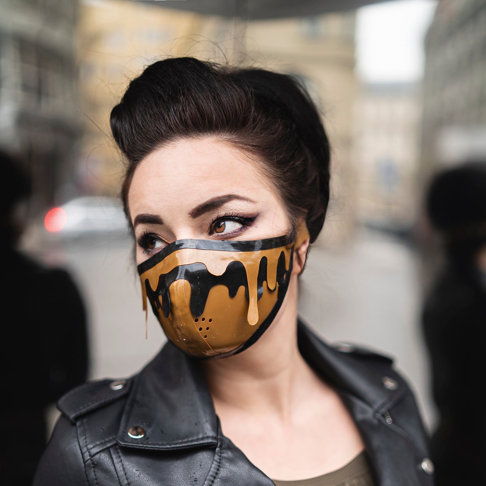Liquid facemask is a great accessory for people with a sense of humor and unusual needs. Beautifully handmade in Prague from high-quality latex rubber. Available in all our color, size and fastening variants.