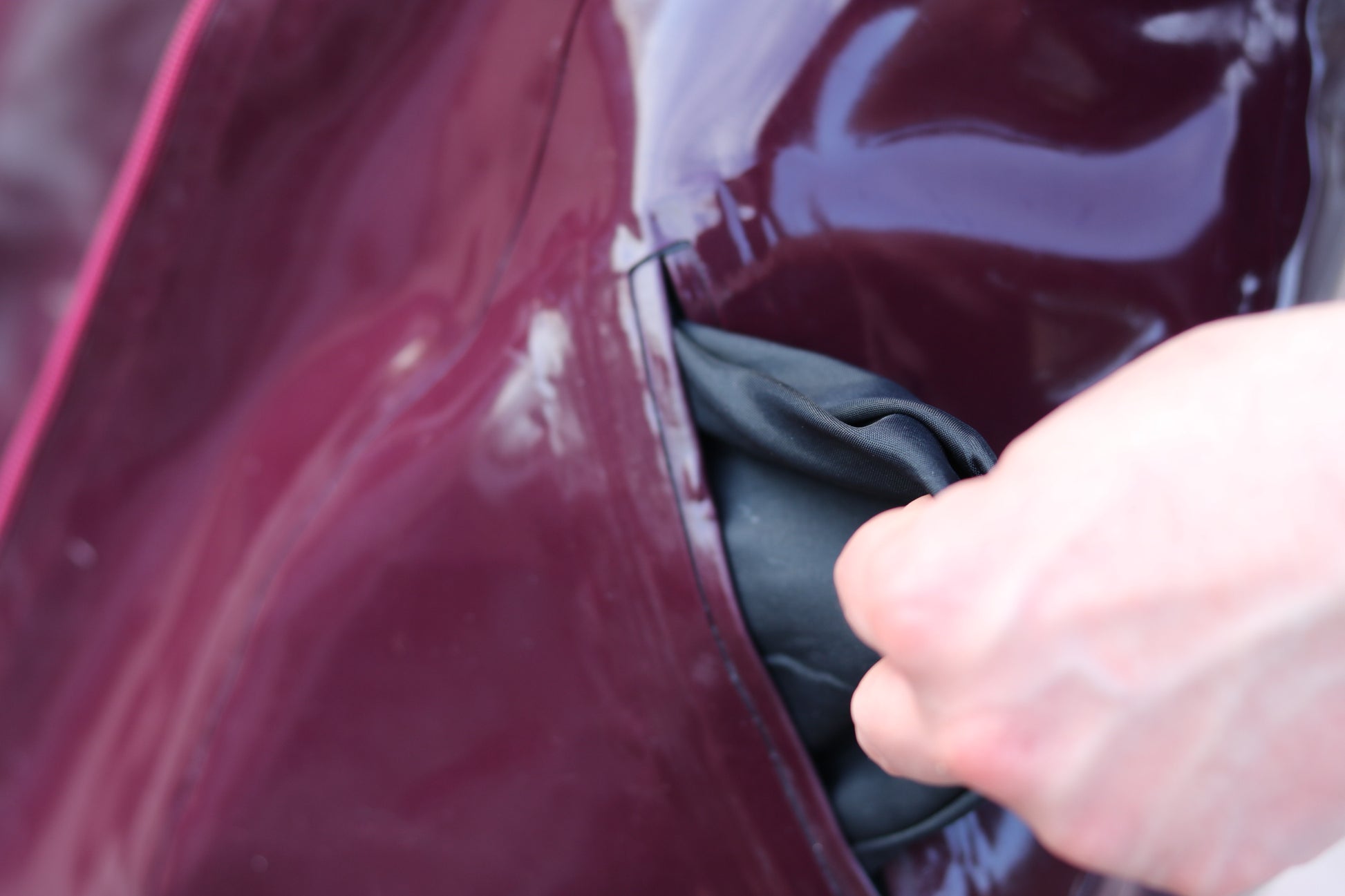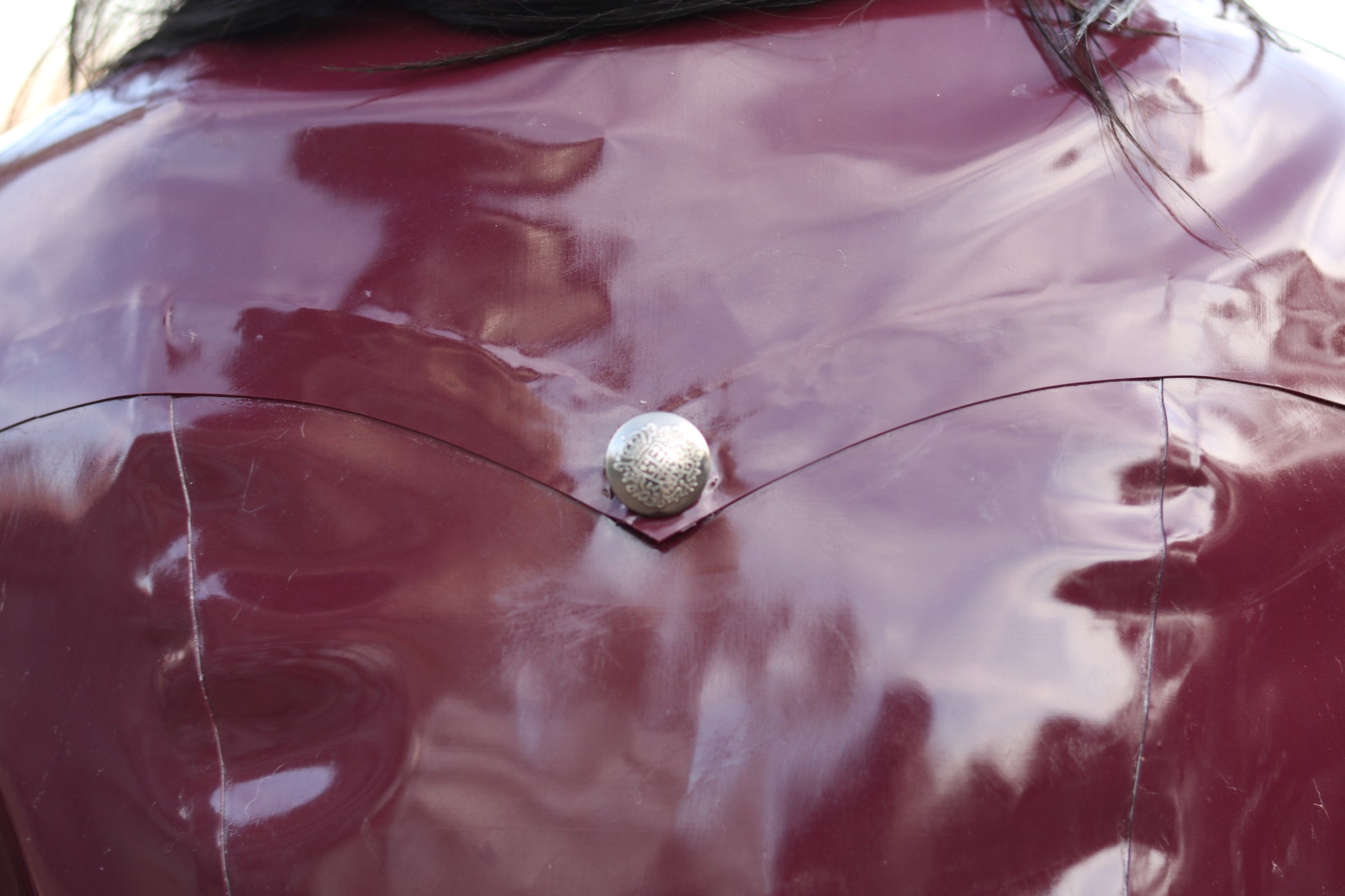 Made of latex in 0,60 mm thickness and shiny polyester fabric lining. Both materials are top quality.